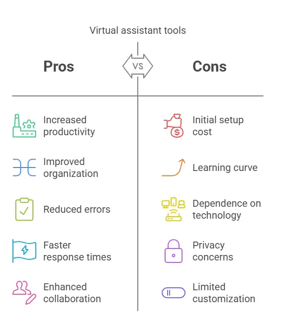 • Improved Organization: Virtual assistant tools help users stay organized by centralizing information, managing schedules, and streamlining workflows. Imagine having all your project deadlines, meeting notes, and important documents accessible in one central location .